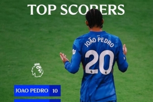本赛季蓝军队内英超射手榜:若昂·佩德罗10球居首 帕尔默恩佐8球