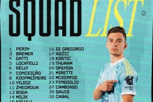 尤文对阵乌迪内斯名单:伊尔迪兹、米利克、戴维在列,DV9缺席