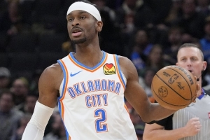 第三节比赛,亚历山大火力全开,进攻端内外线神准,几乎弹无虚发,他单节10中8(三分2中2),罚球1中1砍下19分2篮板,带队稳住局势。