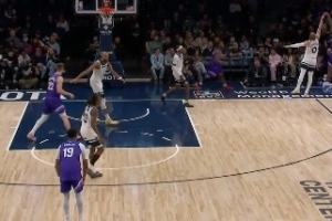 GIF-迪文岑佐扑防森萨博被吹三分犯规 回放后改判森萨博踢腿进攻犯规