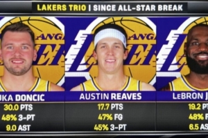 全明星后场均数据:东契奇30分 詹姆斯19.2分 里夫斯17.7分