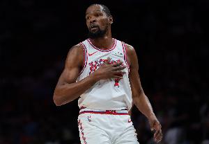 上半场比赛,杜兰特进攻端依然稳扎稳打,但出手不是太多,他出战18分钟,8中4,三分3中2拿到10分3篮板1助攻,正负值-6。